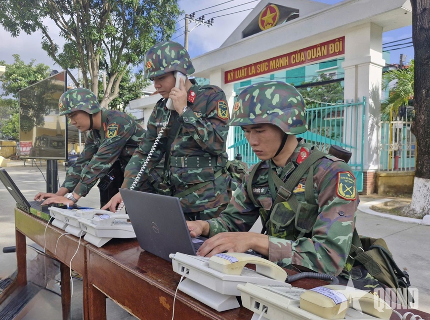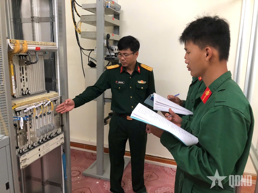 | Cán bộ, nhân viên Trạm V74, Đại đội 4, Tiểu đoàn 2, Lữ đoàn 132, Binh chủng Thông tin liên lạc thực hiện nhiệm vụ bảo đảm thông tin liên lạc. Ảnh: TRẦN HOÀNG |