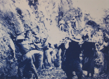 Bộ đội Đại đoàn 316 và dân công mở đường lên Tây Bắc. Ảnh tư liệu (chụp tại Nhà truyền thống Sư đoàn 316)