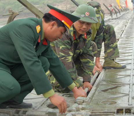 Cầu phao quân sự bắc qua sông Hồng tại bến Chèm đã vận hành được tám ngày (từ 24-11). Hàng vạn chuyển xe lớn nhỏ đã qua lại cây cầu “cổ tích” này đều bảo đảm an toàn tuyệt đối. Có được kết quả đó, là do tinh thần làm việc quên giờ giấc, trực ban, trực chiến, trực chỉ huy, trực kĩ thuật nghiêm túc 24/24 giờ của hơn một trăm cán bộ, chiến sĩ hai đơn vị Công binh vượt sông (Đoàn H39 và