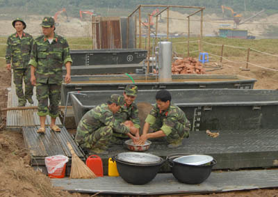 Chuẩn bị quân tư trang thay phiên trên cầu