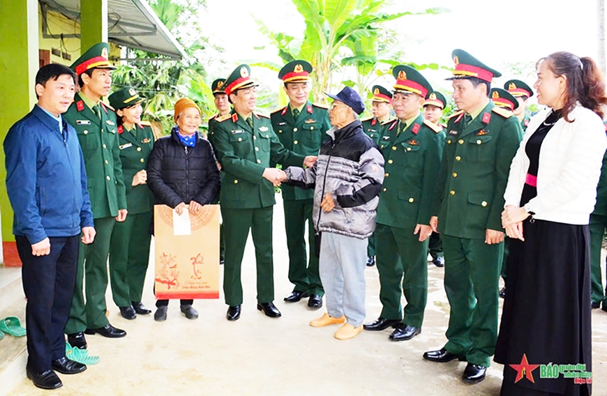 Thiếu tướng Trần Ngọc Anh, Phó bí thư Đảng ủy Cơ quan Tổng cục Chính trị, Cục trưởng Cục Chính trị, Tổng cục Chính trị Quân đội nhân dân Việt Nam thăm, tặng quà gia đình chính sách tại Định Hóa, Thái Nguyên, dịp Tết Nguyên đán Giáp Thìn 2024. Ảnh: NGUYỄN MẠNH