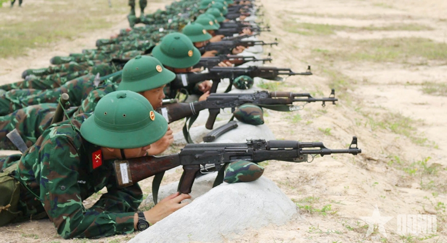 Chiến sĩ mới Trung đoàn 6 tập lấy đường ngắm trong bắn súng tiểu liên AK bài 1.