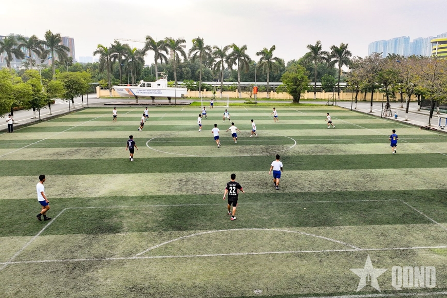 | Chiến sĩ Đại đội Vệ binh, Bộ Tham mưu Cảnh sát biển hào hứng tham gia thi đấu bóng đá trong ngày nghỉ cuối tuần. |