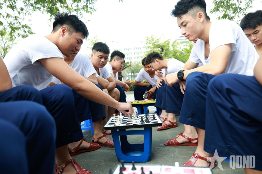 | Chiến sĩ chơi cờ trong ngày nghỉ cuối tuần. |