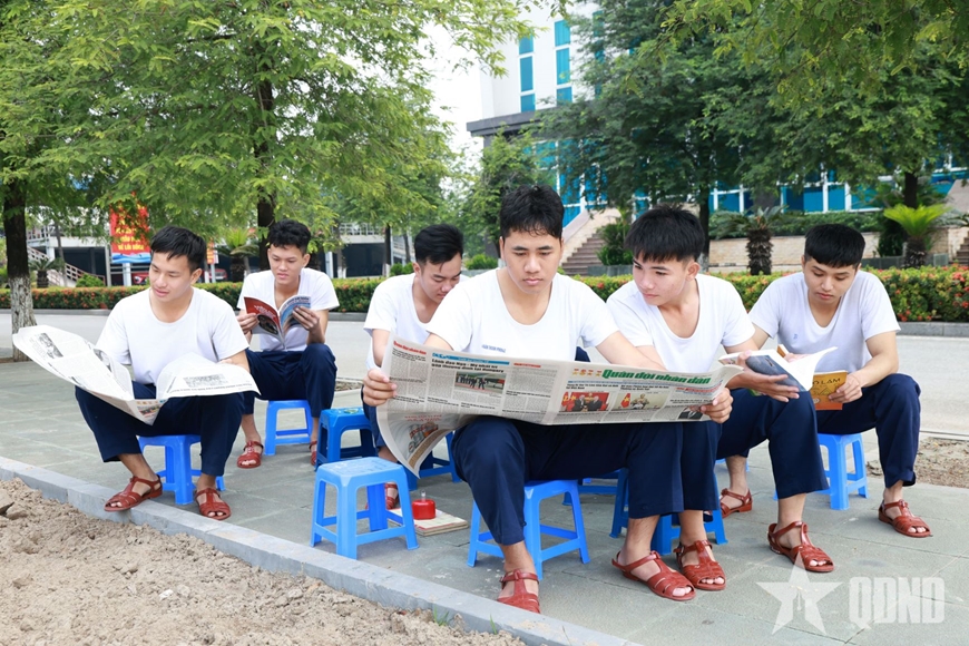 | Sau mỗi tuần huấn luyện, công tác, các chiến sĩ quây quần đọc sách, báo. |
