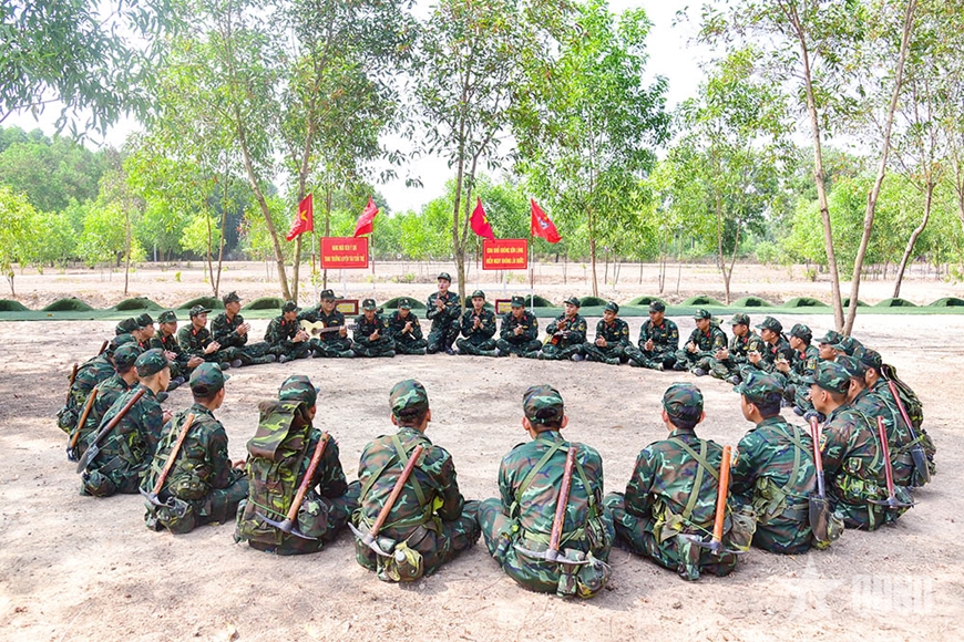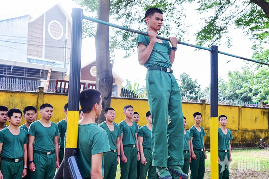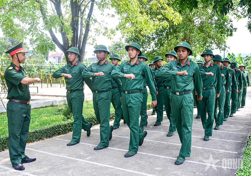 Trong khuôn viên đơn vị, các chiến sĩ trẻ tích cực luyện tập động tác điều lệnh đội ngũ, đi đều, đứng lại, đổi chân, giậm chân... Với khẩu lệnh to, rõ, dứt khoát của cán bộ, những động tác của chiến sĩ mới càng thêm nhanh, mạnh và chuẩn xác. Chỉ trong thời gian ngắn, đội hình ngay hàng thẳng lối, tiếng bước chân dồn dập đầy khí thế.