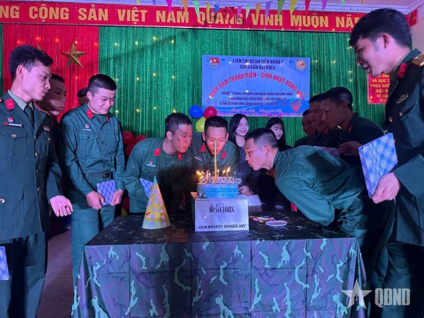 | Tiểu đoàn 7, Trung đoàn 3 tổ chức sinh nhật đồng đội cho chiến sĩ mới. |