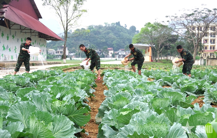 Sau giờ học tập và huấn luyện, chiến sĩ mới tham gia vệ sinh doanh trại, tăng gia sản xuất. Từng tổ, từng tiểu đội được phân công quét dọn sân, chăm sóc bồn hoa, trồng và tưới rau. Những luống rau xanh do chính tay các chiến sĩ vun trồng đang dần hình thành trong khu tăng gia của đơn vị. Qua những giờ lao động ấy, người lính trẻ thêm gắn bó với đơn vị và hiểu rõ hơn trách nhiệm xây dựng môi trường doanh trại xanh, sạch, đẹp.
