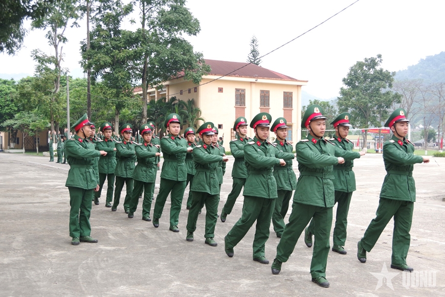 Sau giờ học chính trị, sân huấn luyện lại vang lên tiếng khẩu lệnh. Nội dung điều lệnh đội ngũ được triển khai nghiêm túc, tỉ mỉ. Từng động tác đứng nghiêm, đứng nghỉ, quay trái, quay phải, quay đằng sau, giậm chân tại chỗ hay đi đều được cán bộ hướng dẫn cụ thể. Qua từng buổi luyện tập, bước chân của chiến sĩ ngày càng đều hơn, động tác dứt khoát hơn. Các tiểu đội trưởng trực tiếp chỉnh sửa từng chi tiết nhỏ, từ vị trí bàn chân đến độ cao cánh tay khi đánh nhịp. Từ những động tác cơ bản ấy, tác phong chính quy của người lính dần được hình thành.