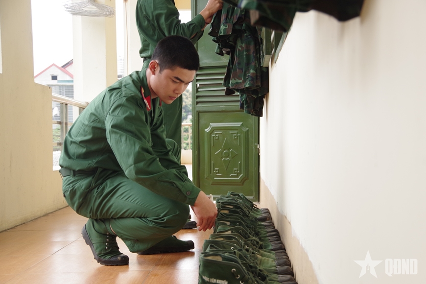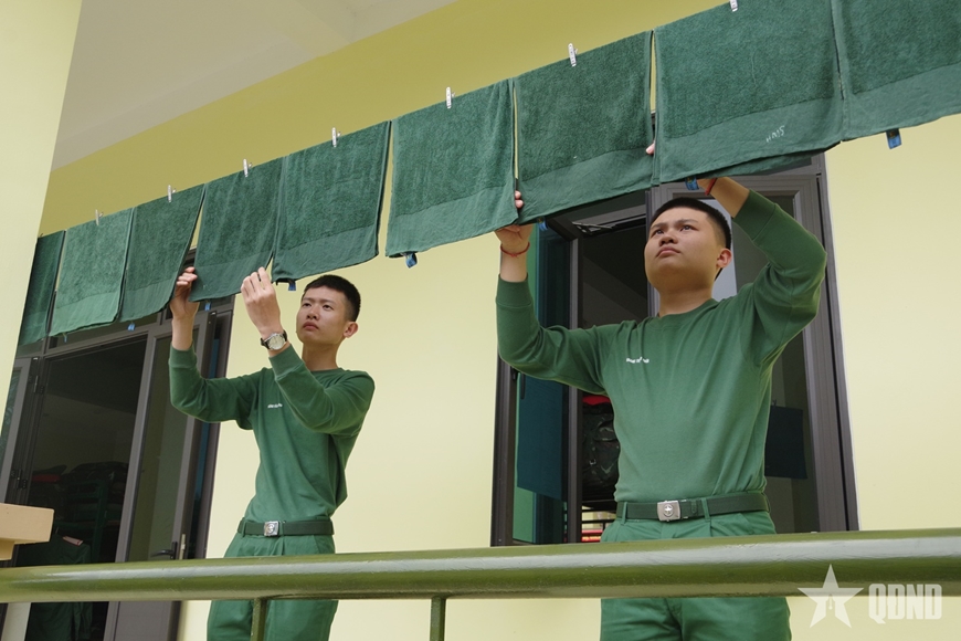 Ban đầu nhiều chiến sĩ còn lúng túng, nhưng chỉ sau vài ngày, chăn màn đã được gấp gọn gàng, quân tư trang sắp xếp ngăn nắp. Những việc tưởng chừng nhỏ bé ấy lại là bài học đầu tiên về tính kỷ luật và sự gọn gàng trong sinh hoạt tập thể.