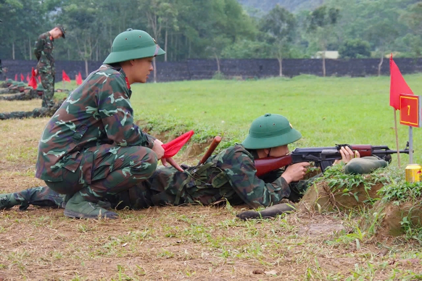 Theo khẩu lệnh, từng chiến sĩ nhanh chóng cơ động vào tuyến bắn, thực hành tư thế nằm bắn đúng quy định. Các động tác kiểm tra súng, lấy đường ngắm, điều chỉnh nhịp thở, siết cò được thực hiện dứt khoát, chính xác. Trên trận địa, dưới cái nắng thao trường, từng loạt đạn vang lên giòn giã, hướng trúng mục tiêu bia số 4.