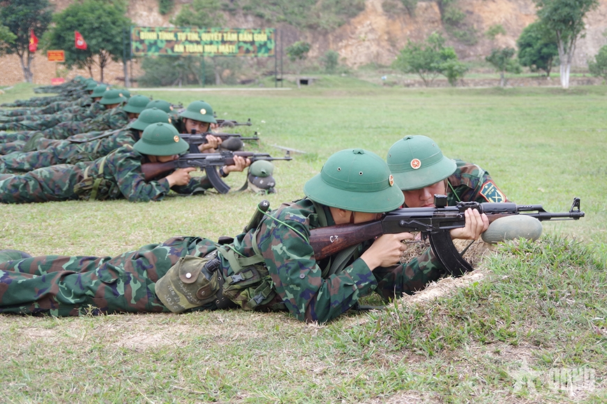 Trên thao trường nắng nóng những ngày đầu tháng Tư, nội dung huấn luyện ngắm bắn mục tiêu bia số 4 bằng súng tiểu liên AK đòi hỏi sự tập trung cao độ. Từ những ngày đầu còn nhiều bỡ ngỡ, đến nay các chiến sĩ mới đã dần nắm chắc yếu lĩnh động tác, biết điều hòa nhịp thở, giữ thăng bằng súng, thực hiện đúng kỹ thuật ngắm bắn. Các động tác như áp má, tì vai, nín thở, bóp cò được thực hiện ngày càng thuần thục; tư thế vững vàng, súng và người phối hợp nhịp nhàng, thống nhất.