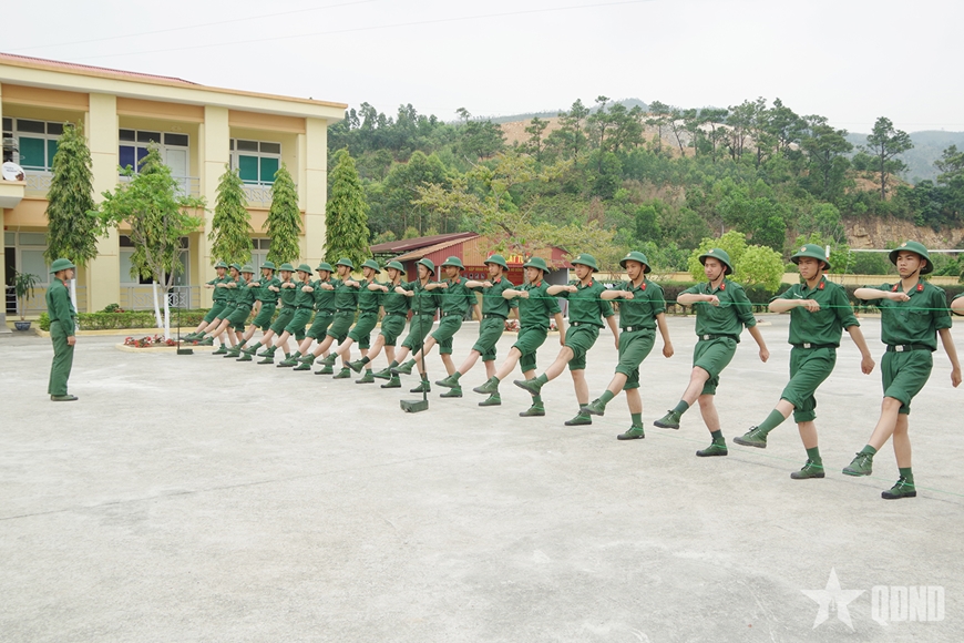 | Chiến sĩ mới hăng say luyện tập điều lệnh đội ngũ. |