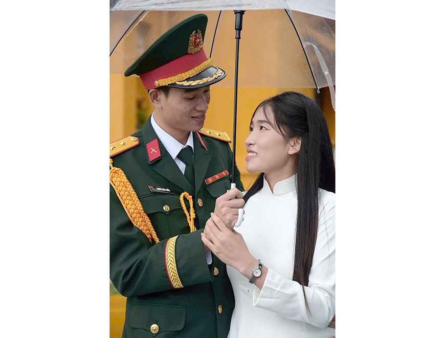 Trung úy Nguyễn Hữu Chiểu cùng bạn gái Hồ Thị Diệu Nơ. Ảnh do nhân vật cung cấp