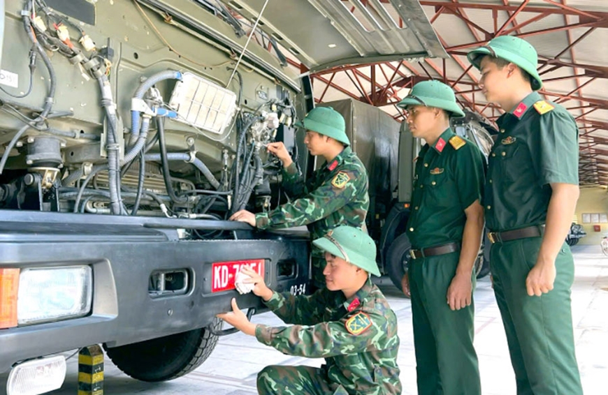 | Cán bộ, nhân viên Đại đội 17, Bộ Tham mưu Quân khu 2 kiểm tra tình trạng kỹ thuật phương tiện trước khi lên đường thực hiện nhiệm vụ. |