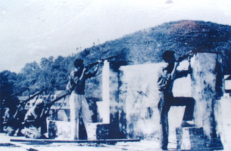 Lực lượng Công an vũ trang tỉnh Quảng Bình phục kích bắn máy bay địch ngày 5-8-1964. Ảnh tư liệu (chụp lại tại Bảo tàng Hải quân).