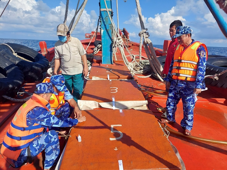 Về công tác tuyên truyền, phổ biến pháp luật cho ngư dân, thời gian qua, Vùng CSB 4 thực hiện rất tích cực. Từ đầu năm 2022 đến nay, đơn vị đã thực hiện tuyên truyền tại 10 huyện, thành phố của 4 tỉnh ven biển là Cà Mau, Kiên Giang, Sóc Trăng, Bạc Liêu. Nội dung tuyên truyền tập trung vào các quy định của Luật CSB Việt Nam, các quy định về cấm khai thác IUU. Bên cạnh đó, bằng phương pháp khoanh vùng, sàng lọc đối tượng, Vùng CSB 4 đã tập trung điều tra, xác định các chủ tàu cá, các đối tượng có biểu hiện, có nguy cơ vi phạm để phối hợp với Bộ đội Biên phòng và địa phương tổ chức tuyên truyền trực tiếp những quy định của pháp luật nhằm ngăn chặn vi phạm (đã tuyên truyền hai đợt cho gần 200 chủ tàu cá). Các lực lượng của vùng khi làm nhiệm vụ trên biển còn tuyên truyền trực tiếp cho nhiều thuyền viên. Từ đầu năm 2022 đến nay đã tổ chức tuyên truyền, phát tờ rơi cho gần 13.000 thuyền viên, kết hợp với trao cờ Tổ quốc, trao 220 suất quà tặng bà con ngư dân nghèo. Thông qua tuyên truyền và vận động các chủ tàu ký cam kết không vi phạm, tình hình vi phạm IUU trong tháng 7-2022 đã giảm được 4 vụ so với tháng 6.