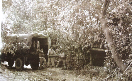 Vận chuyển vũ khí đưa vào cất chứa trong kho an toàn để phục vụ Chiến dịch Điện Biên Phủ. Ảnh chụp lại tại Bảo tàng Vũ khí.