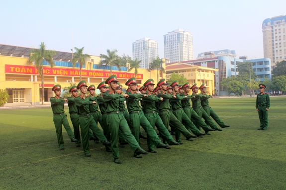 Học viên Học viện Kỹ thuật Quân sự huấn luyện Điều lệnh Đội ngũ. |
