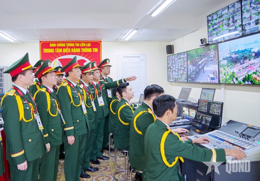 Lãnh đạo Binh chủng Thông tin liên lạc chỉ đạo công tác bảo đảm thông tin liên lạc tại Trung tâm Thông tin sở chỉ huy điều hành diễu binh, diễu hành trong Lễ kỷ niệm 80 năm Cách mạng Tháng Tám và Quốc khánh 2-9. |