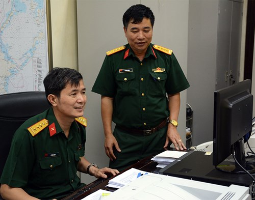 Trong căn phòng làm việc khoảng 30m2, chúng tôi thấy hai đồng chí cán bộ mang quân hàm đại tá ngồi làm việc trước màn hình máy tính. Bên cạnh là máy in, điện thoại quân sự và một vài trang thiết bị khác. Thoạt đầu chúng tôi nghĩ, công việc của những người làm công tác tổng hợp tham mưu tác chiến ở đây có vẻ ngoài giống như hoạt động nghiên cứu vẫn thường thấy ở các cơ quan tham mưu chiến lược trong quân đội. Nhưng qua tìm hiểu và từ cuộc trò chuyện với Đại tá Vũ Chí Cương, chúng tôi hiểu rõ hơn phần nào những khó khăn, vất vả ẩn sâu trong công việc thường ngày của các anh.
