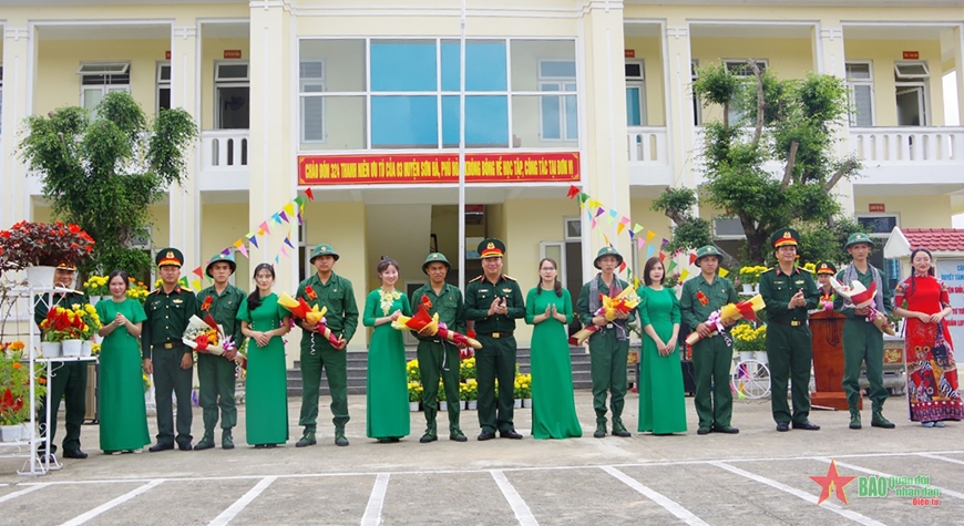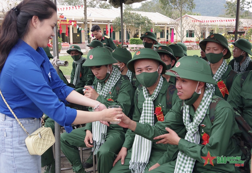 Sư đoàn 2 đón và tặng hoa, động viên chiến sĩ mới.