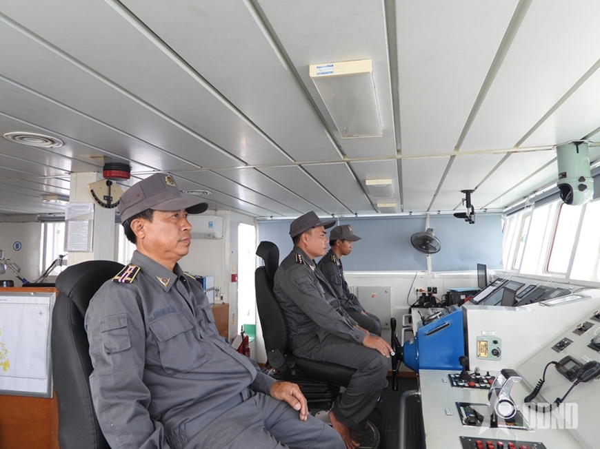 Ca hành trình, từ trái qua phải, máy trưởng Nguyễn Văn Trản, hàng hải Nguyễn Tiến Hải và Trưởng ca-Phó thuyền trưởng Nguyễn Hà Chung Việt.