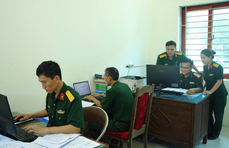 | Cán bộ, nhân viên Ban Tuyên huấn, Phòng Chính trị, Bộ CHQS tỉnh Lào Cai phối hợp chặt chẽ để hoàn thành tốt nhiệm vụ sau sáp nhập. |
