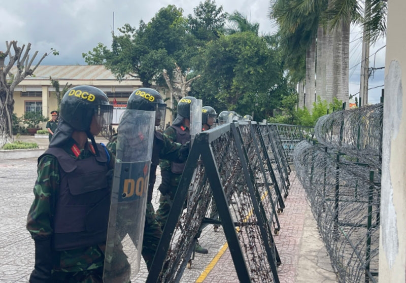 | Cán bộ, chiến sĩ Ban chỉ huy Phòng thủ khu vực 5-An Biên, Bộ CHQS tỉnh An Giang luyện tập phương án chiến đấu. Ảnh: ĐÌNH TÙNG |