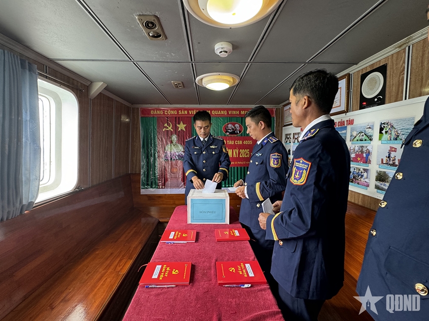 Lần đầu tham dự đại hội trên biển, Trung úy QNCN Lê Xuân Hiếu, Máy trưởng Tàu CSB 6009, xúc động chia sẻ: “Đây là lần đầu tiên tôi được tham gia Đại hội chi bộ và điều đặc biệt là Đại hội được diễn ra trên biển, sự kiện có lẽ trong cuộc đời khó có thể quên đối với cá nhân tôi và nhiều đồng đội khác. Tham gia bầu cử cầm lá phiếu trên tay tôi cảm thấy trách nhiệm của bản thân khi được đóng góp một phần công sức gửi gắm cấp ủy nhiệm kỳ mới phát huy thành tích đã đạt được để cùng chi bộ, lãnh đạo, chỉ đạo tập thể tàu tiếp tục đoàn kết thống nhất, quyết tâm hoàn thành xuất sắc mọi nhiệm vụ được giao”.