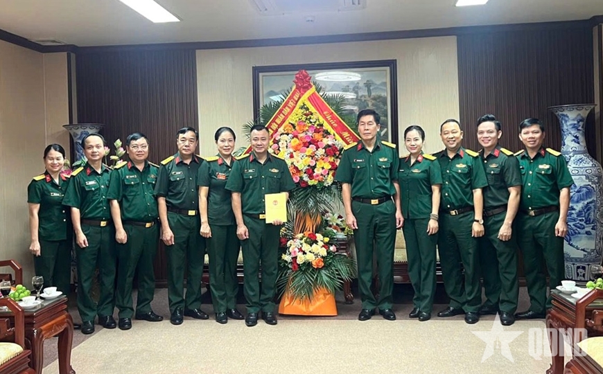 Thủ trưởng Cục Chính trị (Tổng cục Chính trị Quân đội nhân dân Việt Nam) chúc mừng Nhà hát Chèo Quân đội.