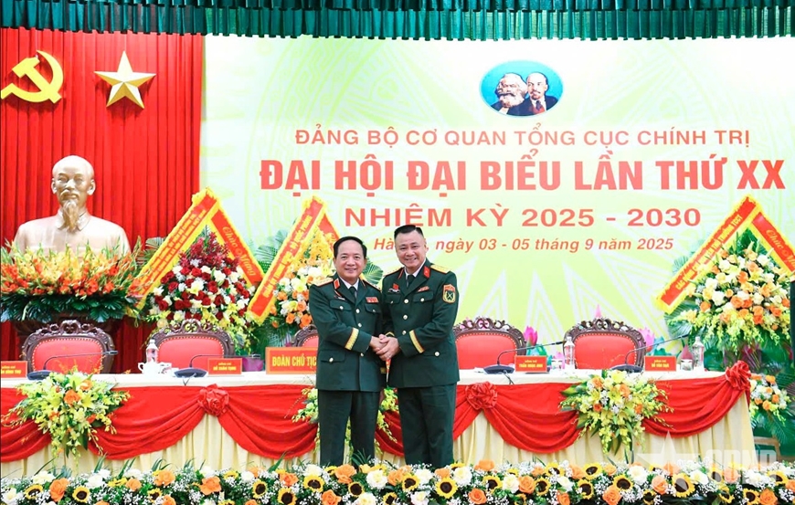 Đại tướng Trịnh Văn Quyết, Bí thư Trung ương Đảng, Ủy viên Thường vụ Quân ủy Trung ương, Chủ nhiệm Tổng cục Chính trị Quân đội nhân dân Việt Nam và Đại tá, NSND Vũ Tự Long, Giám đốc Nhà hát Chèo Quân đội tại Đại hội đại biểu Đảng bộ Cơ quan Tổng cục Chính trị lần thứ XX.