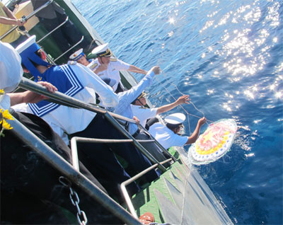 Các đại biểu đã xúc động dâng hương thành kính tri ân đối với anh linh những anh hùng, liệt sĩ đã trở thành bất tử trong lòng biển khơi. Bằng máu xương, công sức, mồ hôi và nước mắt, các thế hệ người Việt Nam đã xác lập, quản lý và bảo vệ vững chắc chủ quyền quốc gia trên Biển Đông, trong đó có chủ quyền đối với hai quần đảo Hoàng Sa và Trường Sa. Sự hy sinh của các anh để bảo vệ chủ quyền biển, đảo Tổ quốc rất vinh quang, để lại niềm tự hào cho các thế hệ, song cũng là nỗi đau tột cùng của các gia đình, đồng bào, đồng chí và nỗi nhớ không nguôi của những người mẹ, người cha, người vợ, người con thơ đau đáu bên cánh cửa mòn mỏi trông mong người con, người chồng, người cha trở về.
