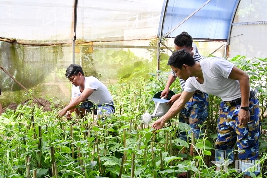 Chăm sóc vườn rau ở đảo Sơn Ca. |