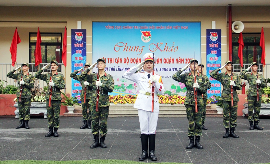 | Cán bộ, đoàn viên Đoàn Nghi lễ Quân đội tham gia chung khảo Hội thi cán bộ đoàn giỏi toàn quân năm 2021. |