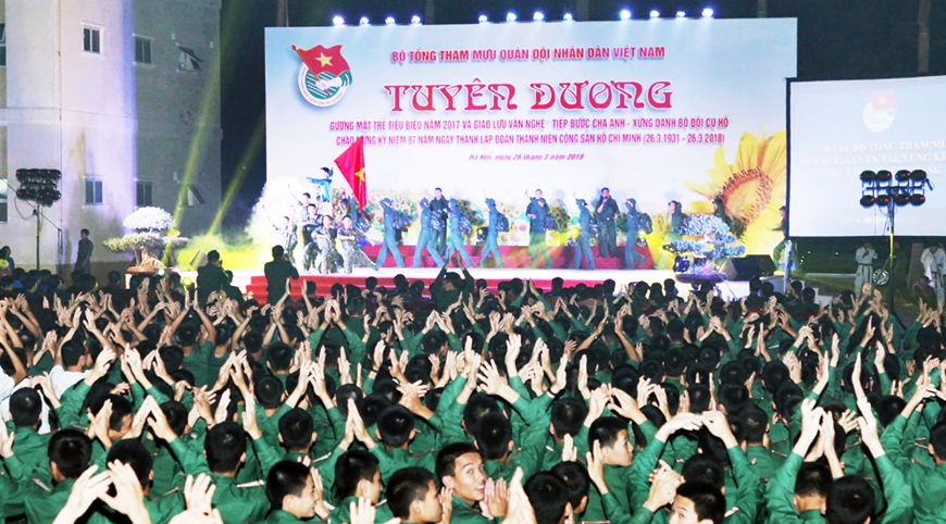 | Lễ tuyên dương gương mặt trẻ Bộ Tổng Tham mưu QĐND Việt Nam và giao lưu văn nghệ "Tiếp bước cha anh, xứng danh Bộ đội Cụ Hồ", năm 2018. |