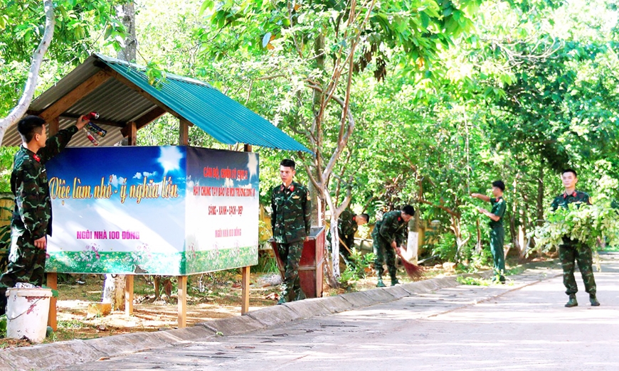 | Đoàn viên, thanh niên Trung tâm 95 (Cục Tác chiến điện tử) thực hiện mô hình “Ngôi nhà một trăm đồng”, chung tay bảo vệ môi trường. |