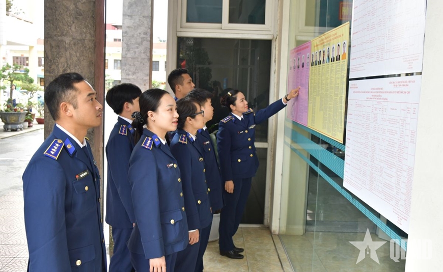 | Cán bộ, chiến sĩ đơn vị tìm hiểu thông tin về người ứng cử và hoàn thành bầu cử đại biểu Quốc hội khóa XVI và đại biểu Hội đồng nhân dân các cấp nhiệm kỳ 2026-2031. |