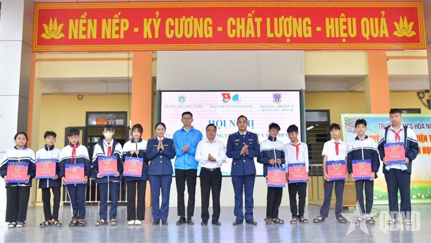 | Tặng quà cho học sinh có hoàn cảnh khó khăn, học giỏi tại Trường Trung học cơ sở Hòa Nghĩa, phường Dương Kinh, Hải Phòng. |