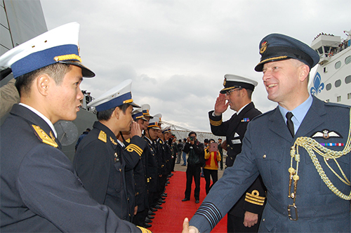 Cán bộ, chiến sĩ Vùng 3 Hải quân đón tàu Hải quân Hoàng gia Anh Daring cập cảng Tiên Sa (Đà Nẵng) ngày 18-12-2013. Ảnh: Hồng Sơn