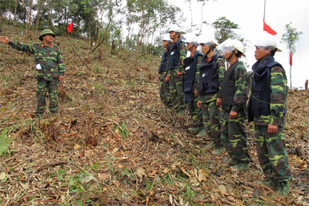 Cán bộ, chiến sĩ Trung tâm Công nghệ XLBM triển khai rà phá bom, mìn tại Lạng Sơn.