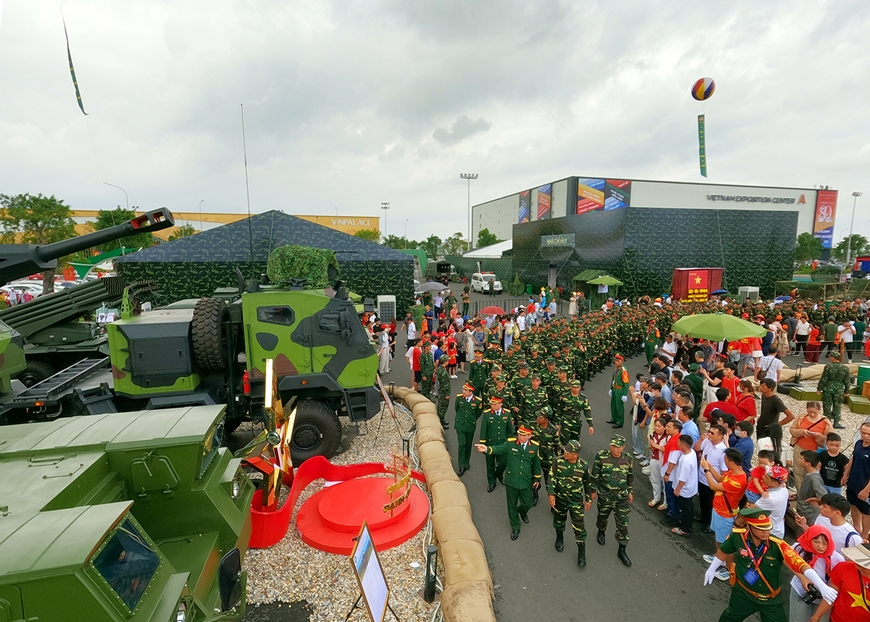 Các đoàn khách tham quan khu trưng bày trang bị, khí tài hiện đại của Quân đội nhân dân Việt Nam tại Triển lãm 80 năm hành trình “Độc lập-tự do-hạnh phúc”, tháng 9-2025. Ảnh: TUẤN HUY