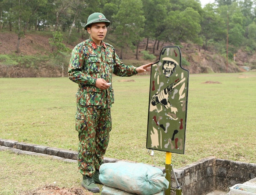 | Thượng úy Tăng Xuân Nghĩa (Trung đoàn 2, Sư đoàn 3, Quân khu 1) giới thiệu sáng kiến "Chân bia ẩn hiện điều khiển từ xa". |
