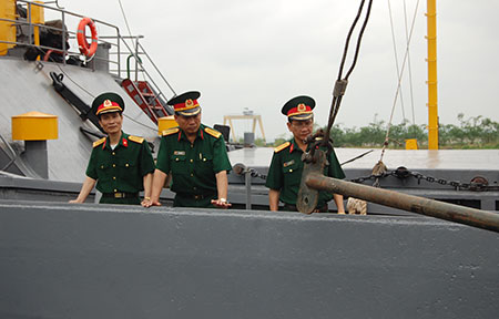| Các đồng chí lãnh đạo chỉ huy Lữ đoàn 649 có mặt tại cầu cảng để giám sát việc xếp đặt vật chất, hàng hóa, chuẩn bị cho việc xuất bến. |