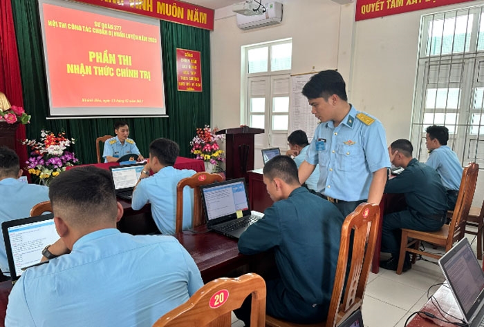 | Thi nhận thức chính trị ở Sư đoàn 377 trên phần mềm “Kiểm tra nhận thức chính trị” do thành viên Câu lạc bộ “Sáng tạo trẻ” xây dựng, phát triển. Ảnh: XUÂN SANG |