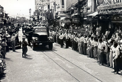 | Nhân dân Hà Nội hân hoan đón chào bộ đội ta về tiếp quản Thủ đô. Ảnh tư liệu. |