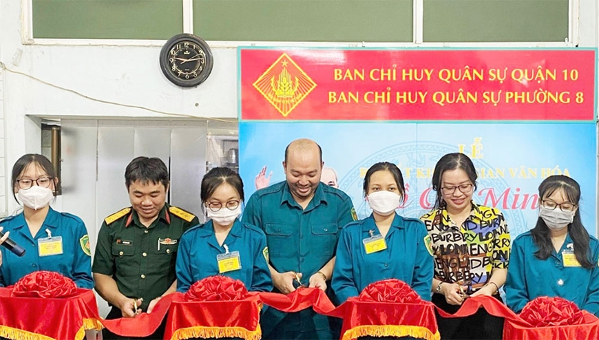 | Ban CHQS phường 8, quận 10, ra mắt Không gian văn hóa Hồ Chí Minh. |