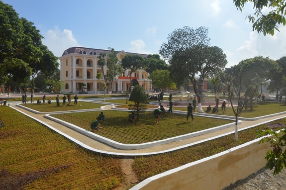 Cán bộ, học viên nhà trường tham gia xây dựng cảnh quan môi trường. |