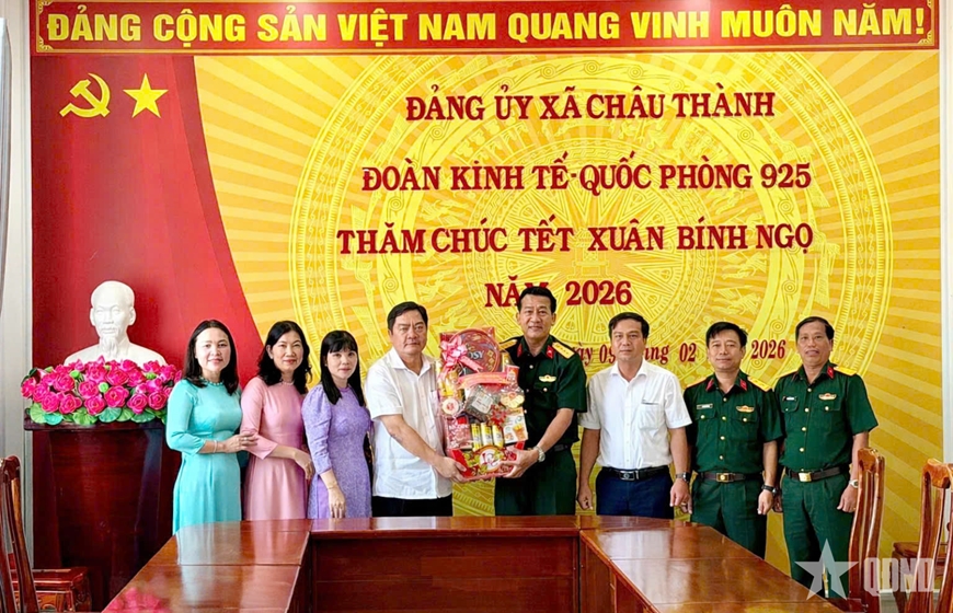 Đại tá Trần Văn Tươi, Chính ủy Đoàn Kinh tế - Quốc phòng 925 thăm, chúc tết Đảng ủy xã Châu Thành, tỉnh An Giang.