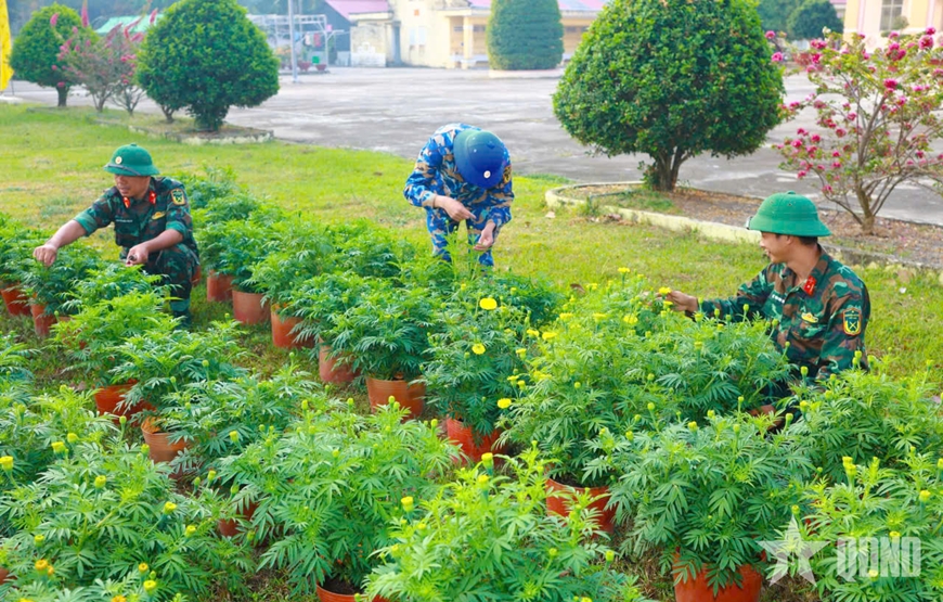 Để tạo không khí vui tươi, phấn khởi, đơn vị đã triển khai trồng hơn 1.000 chậu hoa trang trí cảnh quan doanh trại; tổ chức trang trí bàn thờ Tổ quốc, hái hoa dân chủ, nghe thư chúc Tết của Chủ tịch nước, chào cờ đầu năm và các trò chơi dân gian, văn nghệ... Đại tá Trần Văn Tươi nhấn mạnh: “Những hoạt động này góp phần tạo động lực tinh thần to lớn để cán bộ, chiến sĩ an tâm công tác, đón Tết đầm ấm, vui tươi nhưng vẫn nêu cao tinh thần cảnh giác”.